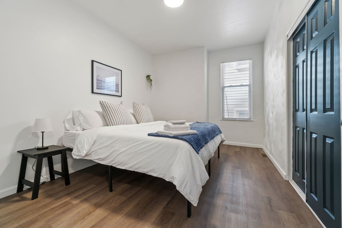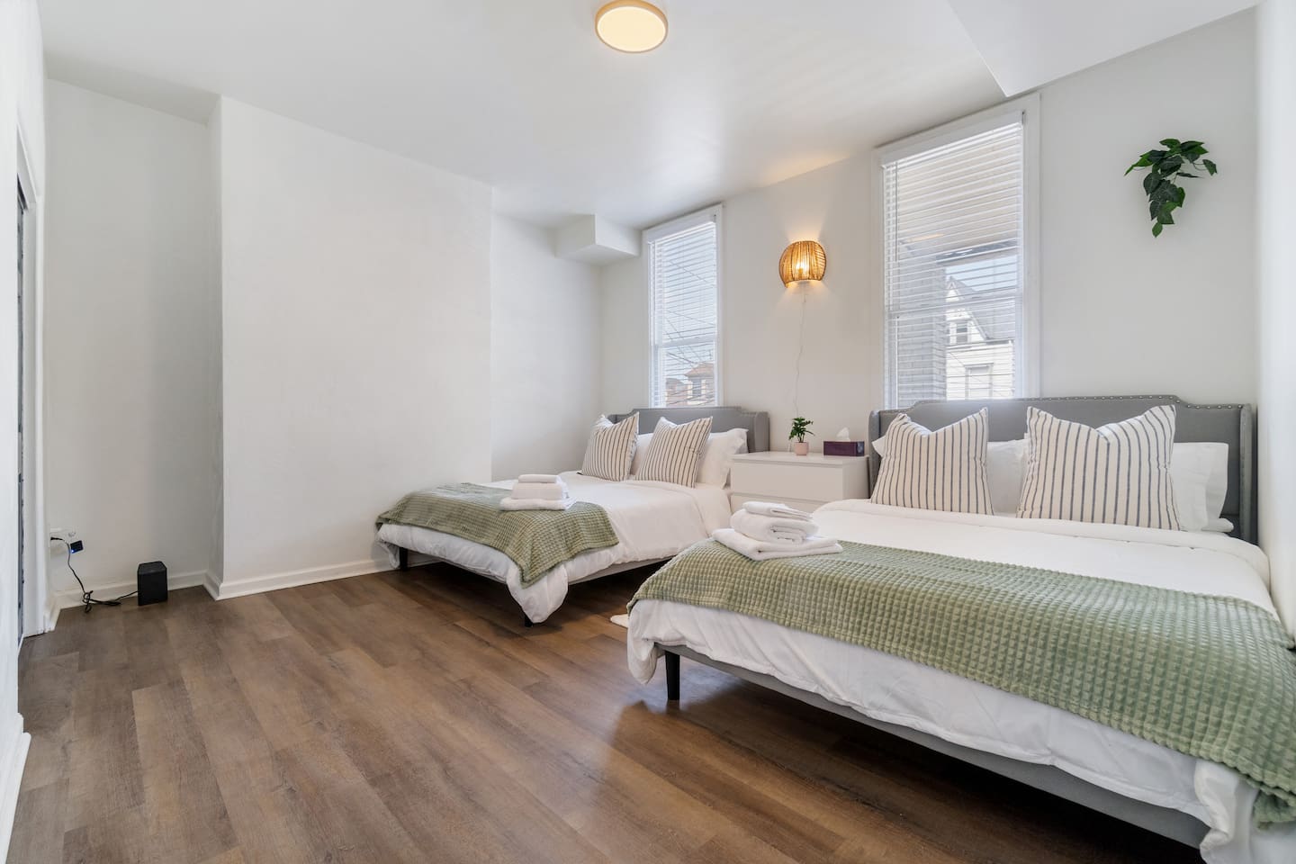 Welcome to our fully renovated 2 bed/1 bath unit with a dedicated office space, just minutes away from Downtown. This impeccably designed space features a fully equipped kitchen with luxury stainless steel appliances, a smart TV, in-unit washer/dryer, and much more, making it the Perfect retreat for families and friends ! ➤ Street Parking: The unit is situated in the N zone. Upon request, guests can obtain an N zone parking permit for approximately $15 for up to a week. Alternatively, free street parking is available approximately 75 meters from the unit without any parking restrictions. Please refer to the attached map in the listing for further details ➤ Bedrooms: The unit comprises 2 bedrooms - one with a King-size bed & the other with 2 Queen beds, accommodating a maximum of 6 guests ➤ Dedicated Office Space: Work comfortably in the dedicated office space furnished w/ an ergonomic chair and desk ➤ Layout: The living, kitchen, dining, and bathroom areas are conveniently located on the main floor, ensuring easy accessibility without stairs within the unit ➤ Design Features: Enjoy the sophisticated high-end finishes complemented by original exposed brick walls in the living room ➤ Kitchen Amenities : The kitchen boasts brand new luxury stainless steel appliances, including a microwave, stove and oven, dishwasher, toaster, fridge and freezer, kettle, and coffee machine. Additionally, kitchen and cooking essentials such as coffee, sugar, oils, pots, pans, dinnerware, glassware, knives, cutlery, spices, & more are provided ➤ Dining Area: Gather around the round dining table that comfortably seats 4 people, with a highchair available for infant ➤ Family-Friendly Amenities: For families traveling with infants, a baby pack 'n play are available in the master bedroom closet ➤ Bathroom : The unit features 1 full bathroom furnished with crisp hotel-quality linen ➤ Entertainment: Enjoy entertainment on the 50" smart TV ➤ Laundry Facilities: In-unit washer and dryer are available in the basement, shared with other units for your convenience ➤ Check-in: Seamlessly access the unit with our smart lock check-in system ➤ Family Essentials: A high chair and pack n' play are included for your convenience (sheets not provided) Although our cleaning and maintenance teams work diligently to ensure the unit is clean and prepared, this is an older building which is renovated. Older homes are known to have general wear & tear, creaky steps, less sound separation between units, etc. If this is not something you are comfortable with, another home may be a better fit for you ! Note: If there is no prior trip history, a background check form may be required .
