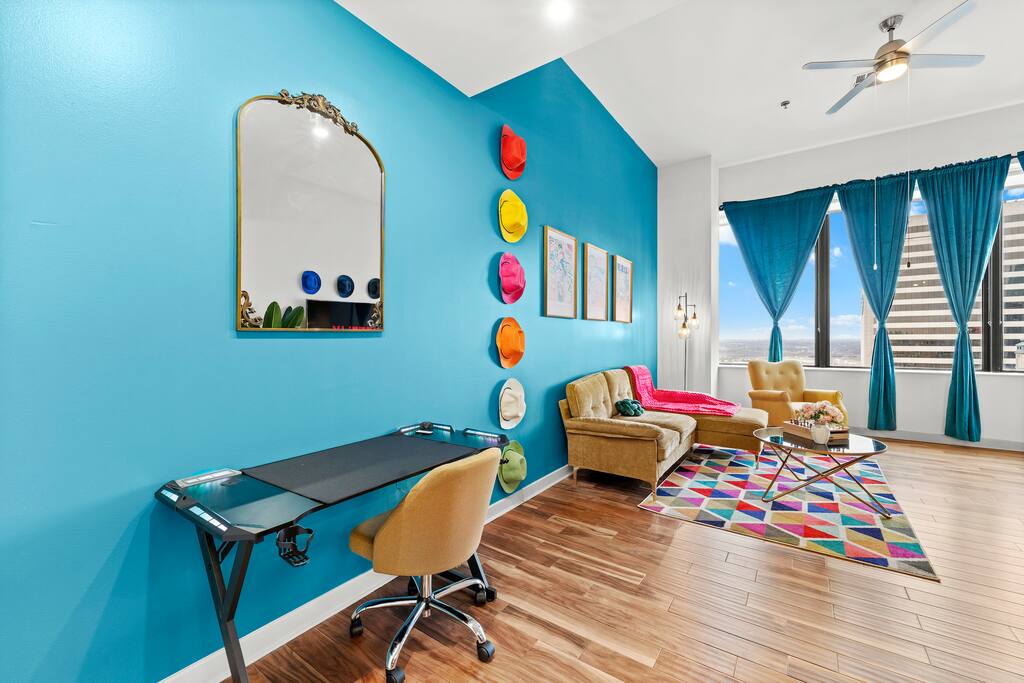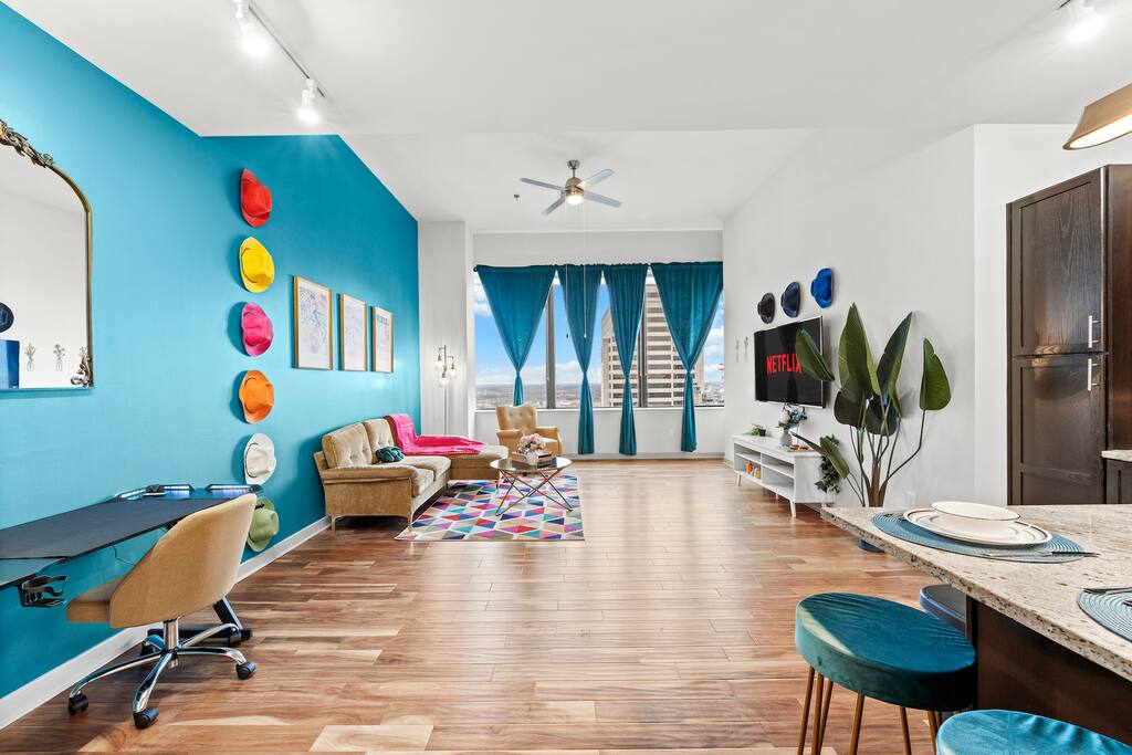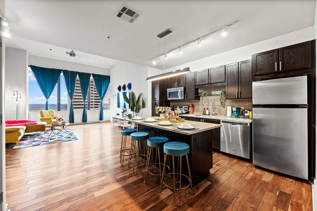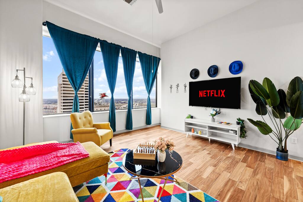 Relax in this spacious 1 Bedroom apt in Downtown Dallas. The city is full of award-winning restaurants, bars, shopping malls, historic landmarks, & attractions. Adventure through the Dallas region easily from this prime location THE SPACE: ✦ Contact-free check-in . ✦ Free Parking inside the Parking Garage . ✦ Super-fast WiFi. ✦ Fresh towels and bathroom essentials . ✦ Fully equipped kitchen . ✦ 65 inches smart TV (ROKU). ✦ Pool, Fitness center (open 24/7). ✦ Comfortable 1 Bedroom w/ King Bed. ✦ Additional Air Mattress Available . ✦ Desk , Chair . ✦ Board Games for Adults. ( Fully equipped kitchen includes : Microwave, Stove, Oven, Refrigerator/Freezer, Dishwasher, Toaster, Sink - Hot & Cold Water, Trays, Glasses, Coffee, Sugar, Salt, Olive Oil and Spices, Silverware, Pots and Pans, Coffee Maker + Coffee Essentials, Kettle, Mixing Bowls, Aluminum foil and baking tray) . WHAT'S NEARBY: - The Sixth Floor Museum at Dealey Plaza (0.3 miles). - Dallas Museum of Art (0.6 miles). - Klyde Warren Park (0.7 miles) . - Pioneer Plaza (1.1 miles). - Dallas World Aquarium (1.1 miles) . - Perot Museum of Nature & Science (1.2 miles). - Reunion Tower (1.3 miles) . - Dallas Farmers Market (1.4 miles) . - American Airlines Center (~1.8 miles) . - Cotton Bowl Stadium (~4.4 miles). OTHER THINGS TO NOTE: In case your preferred dates are already taken, or you are traveling in a larger group, please check our profile as we offer more units at the same Building! Note: If there is no prior trip history, a background check form may be required.