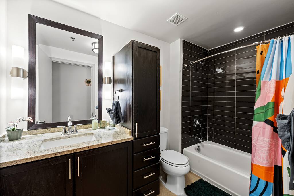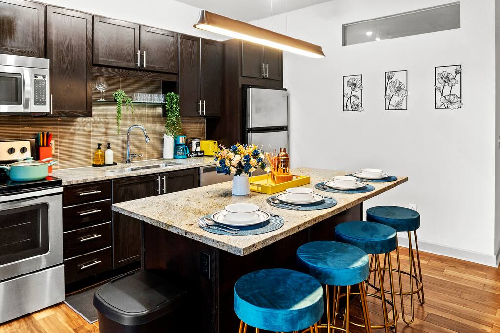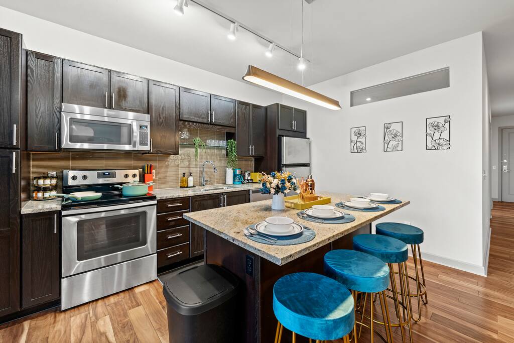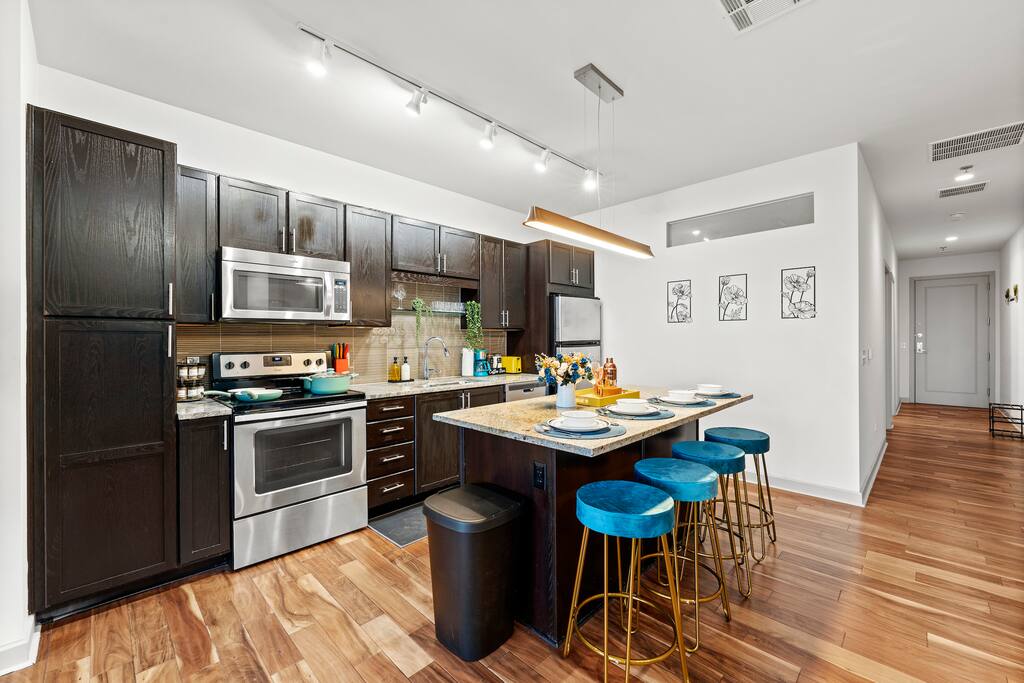 ➤Please provide a copy of your Government ID. ID Verification is required to check in. ➤Guests are responsible for their own consumables after the initial supply. ➤Please check the house rules. ➤🚭 No smoking in the unit or any common areas. Guests are responsible for disposing of cigarette butts properly in the outdoor bins. Please check the house rules for more details. ➤No parties allowed, a noise monitoring device is placed inside the unit. ➤ Security Camera: We have one doorbell camera facing the entrance. ➤ Guest are expected to use their own Netflix account. In case of any purchase of Spectrum channels or & on's - you will be billed the amount. ➤Noise Monitoring Device: A noise monitoring device is present inside the unit. This device does not record any audio or video but monitors the decibel level to ensure a peaceful environment. ➤Please note: The building management retains a copy of the unit key and may access the unit in case of emergencies or to carry out essential maintenance. While most maintenance visits are scheduled in advance, occasional unscheduled visits may occur if prior appointments are missed or urgent repairs are needed. PET'S And FEE: ➤The pet fee is $150 per pet. ➤There will be an additional pet fee for undisclosed pets. Please read the house rules for more details. ➤Certain breed restrictions apply including, but not limited to, mastiff, Pitbull, Rottweiler & Doberman pinscher. ➤Photo of pet and vet records required. Reminder: Just so you know, photos of the property may slightly differ from the actual property. This is due to any upgrades or enhancements that have been made, such as upgraded furniture, decor or general maintenance.