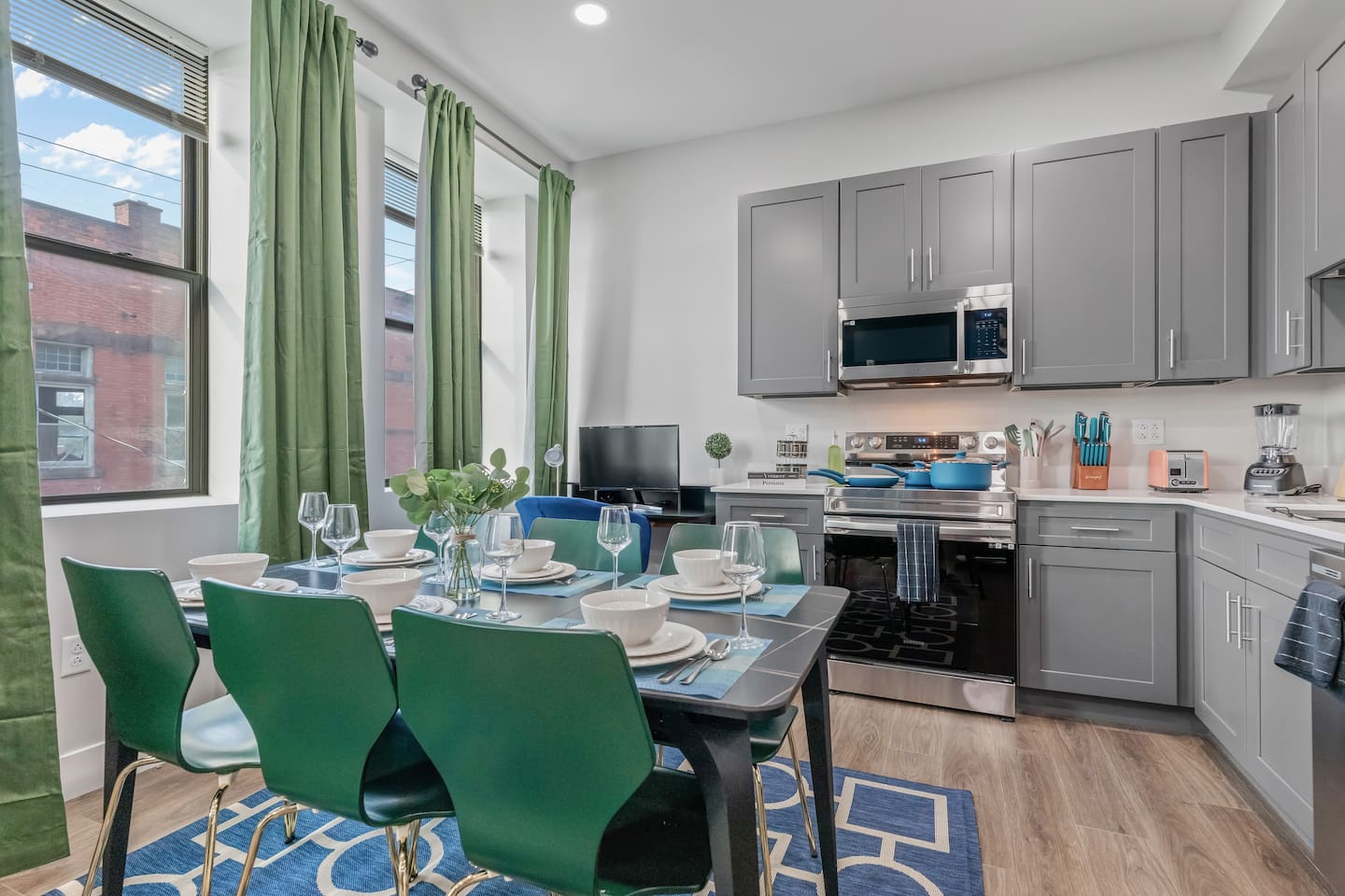 Welcome to our apartment nestled within a century-old building in a developing area, this apartment offers an exceptional stay with top-notch finishes. As you enter, you can experience the blend of the past with the present . While the building exudes historic character, with vintage vibes, the apartment is a sanctuary of the latest amenities and sophisticated touches for you to enjoy comfort & style . For business/leisure, this place provides an experience of old, new & evolving Cleveland .
