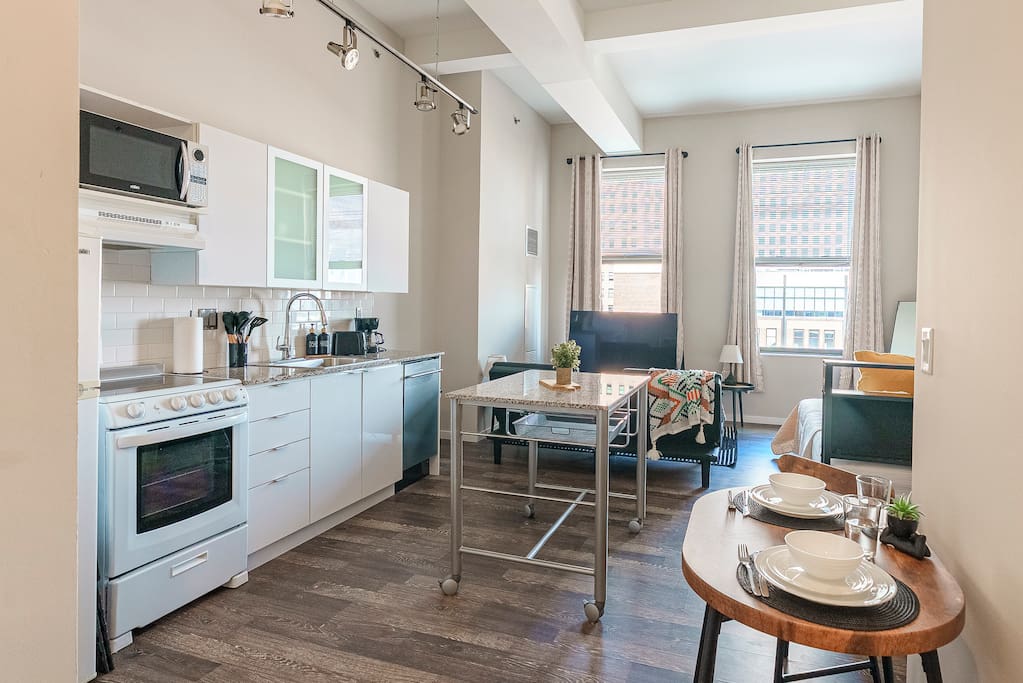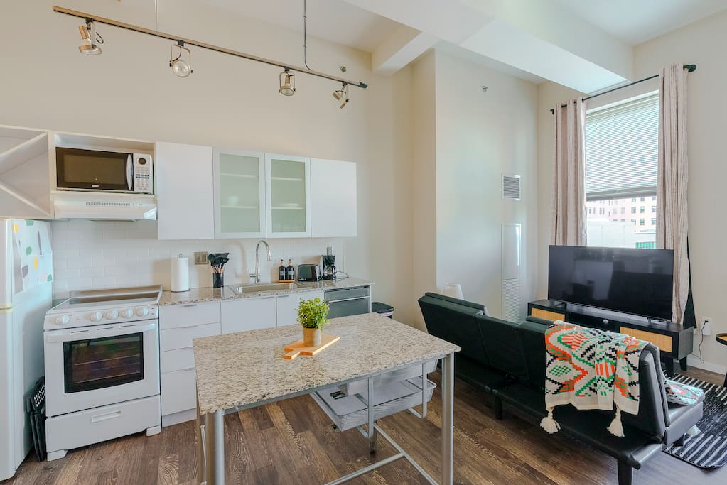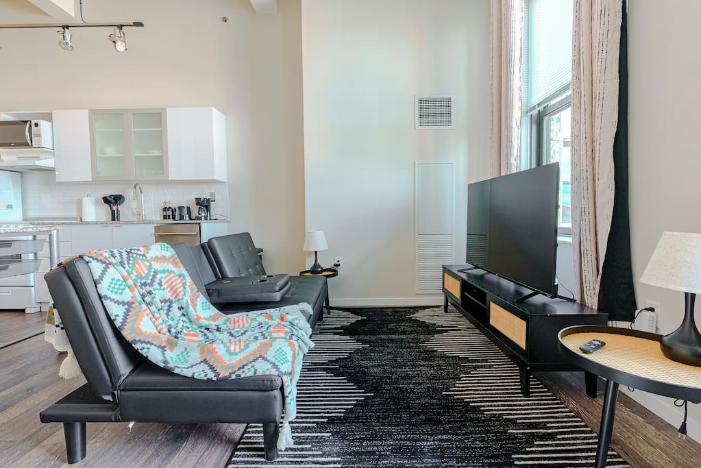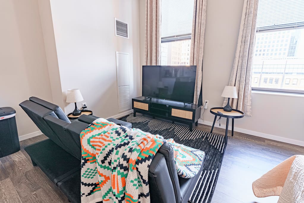 Welcome to your stylish & modern 1BR apartment in the heart of downtown Cincinnati, steps from the stadium! Perfect for 2 guests! Enjoy a cozy, well-designed space with chic décor, a fully stocked kitchen, bath & smart TV. Walk to top attractions, dining, and events. Ideal for couples or business travellers. Step into this heart of the Central Business District and experience Cincinnati like never before. BACKGROUND CHECK & GOVERNMENT ID REQUIRED.