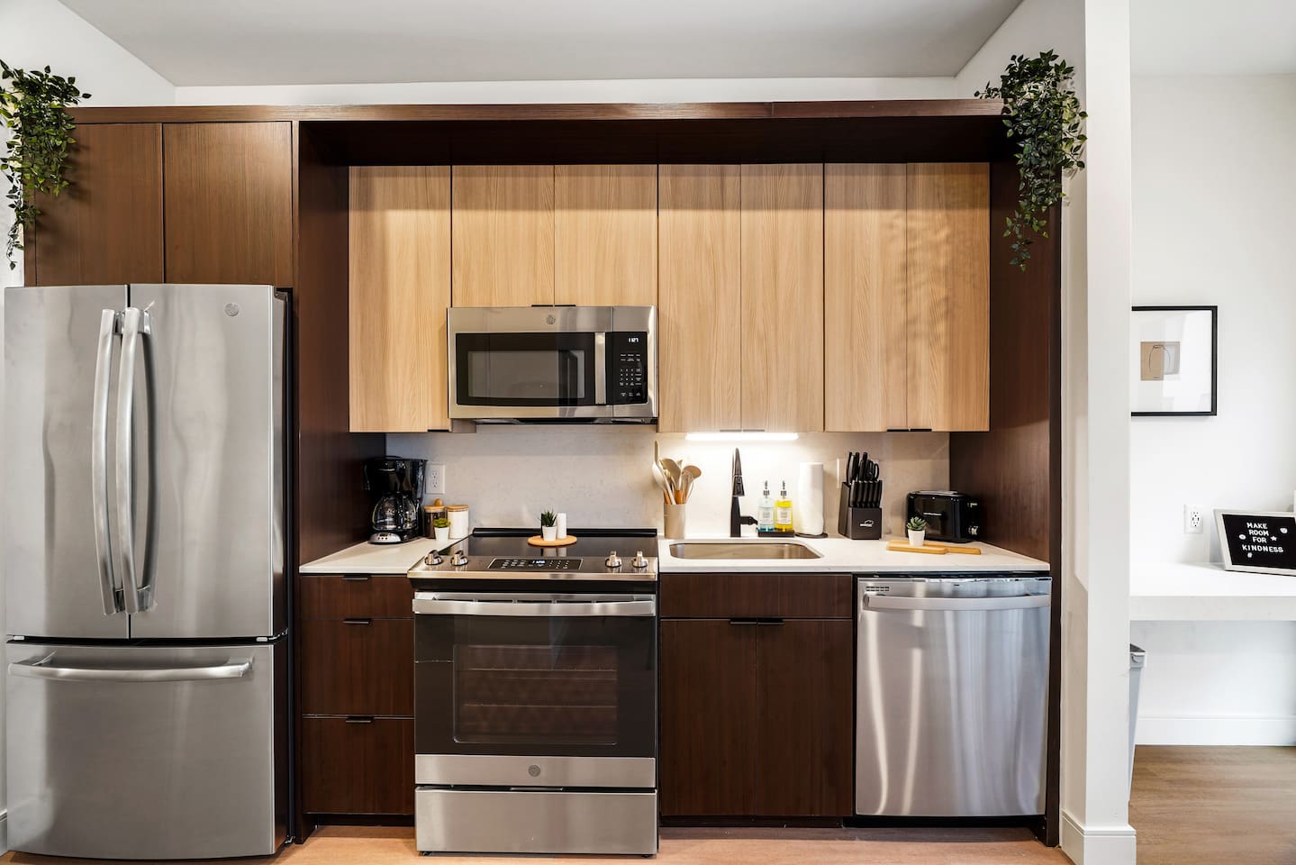 ➤ 1 Comfy Queen Bed Studio. ➤ Condo-Level, European-Style, Two-Tone Kitchen Cabinetry with Quartz Countertops. ➤ Brand new stainless steel appliances. ➤ Floor-to-ceiling windows o maximize Natural Light. ➤ Luxurious Bathroom Finishes W/ Frameless Walk-In Showers. ➤ 50" Smart TV. ➤ Stackable washer and dryer included in the unit. Immerse yourself in comfort and style in our newly furnished space. Whether unwinding in the luxurious bathroom or enjoying the shows on the Smart TV, every detail is designed for your relaxation. The perfect blend of modernity and convenience awaits you!