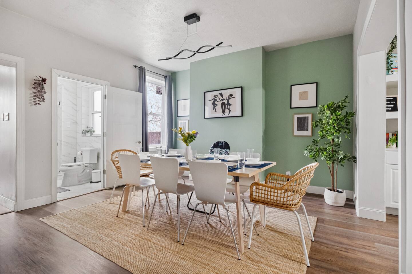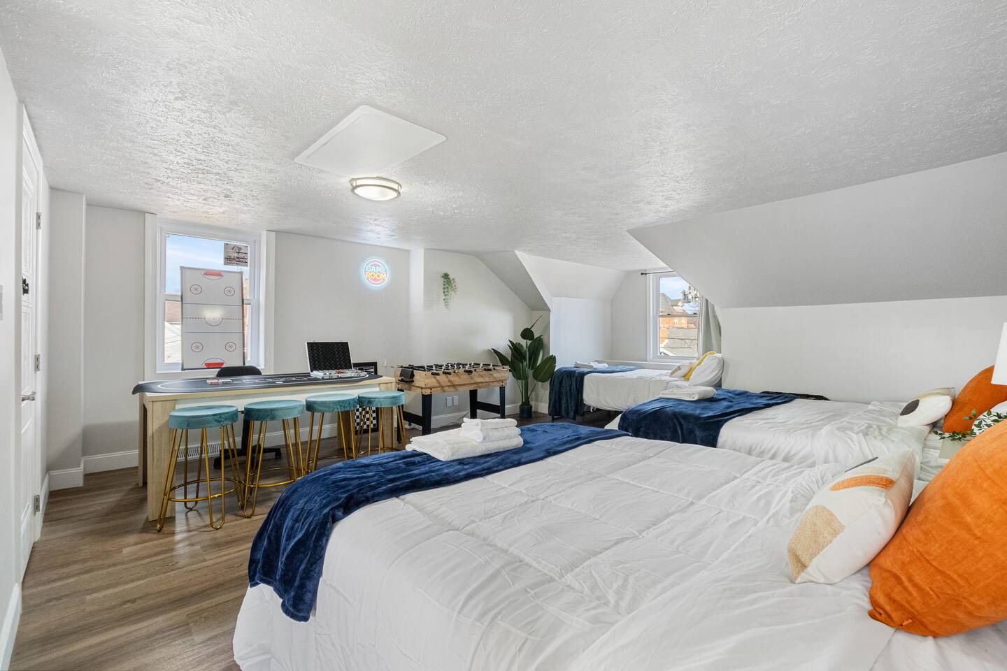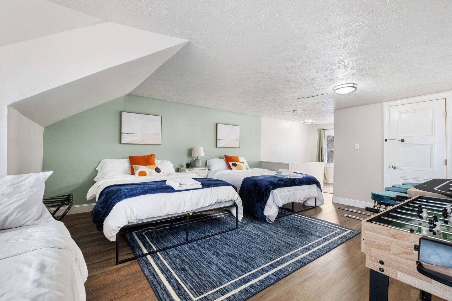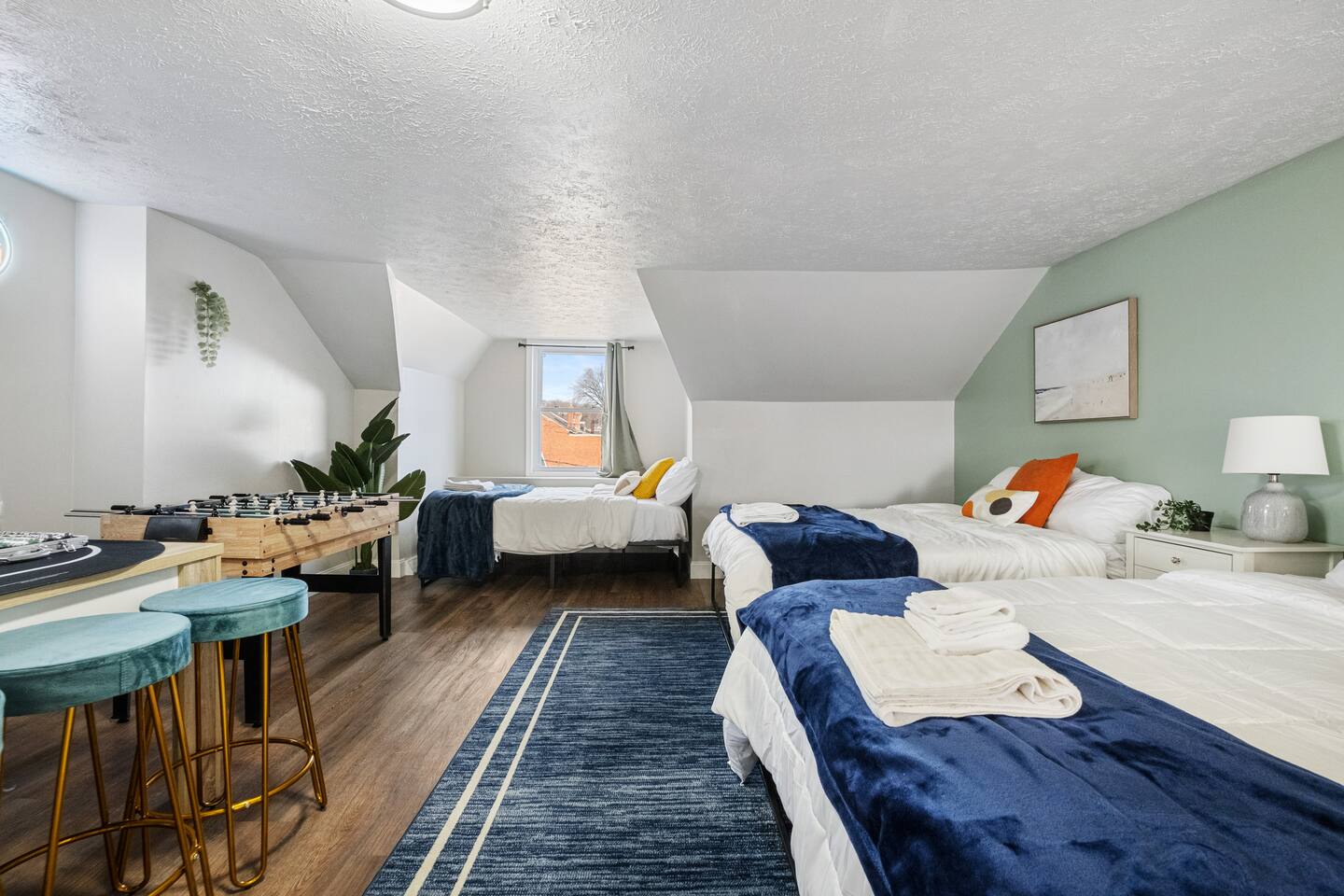 Newly Upgraded Design ✨ Experience comfort in this charming 4 bedroom (5 bed), 2-bath house ideal for family gatherings or friends getaways Enjoy modern decor, a spacious layout, a King bed, two Queen beds, 2 Full beds and 2 portable cribs. Relax in the tub with a Roman waterfall & auto-defog mirrors, an updated deck, and ample free parking Book now and experience the best of the Steel City !