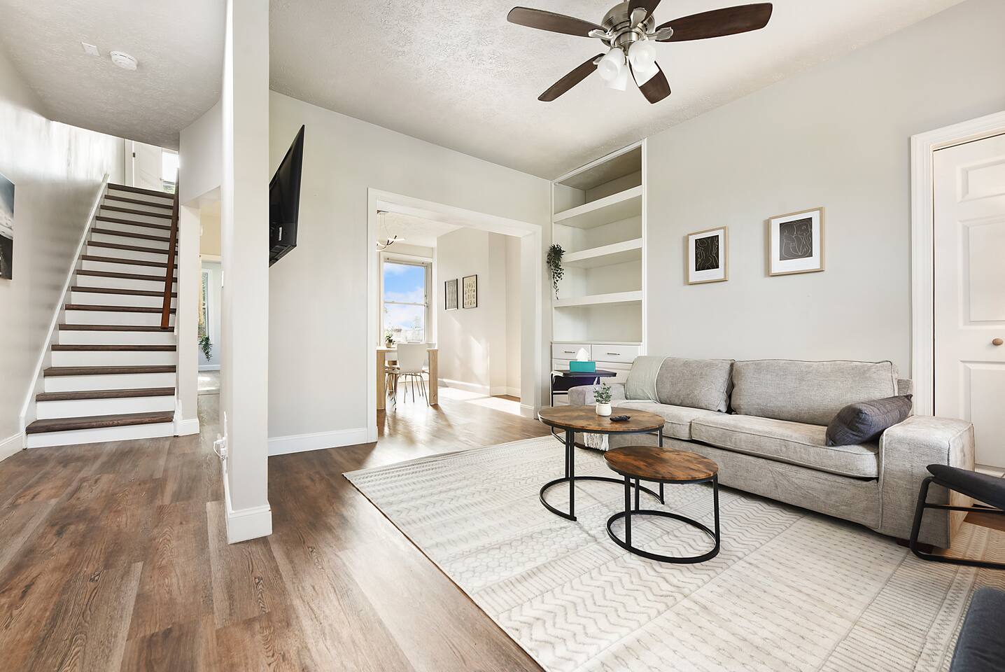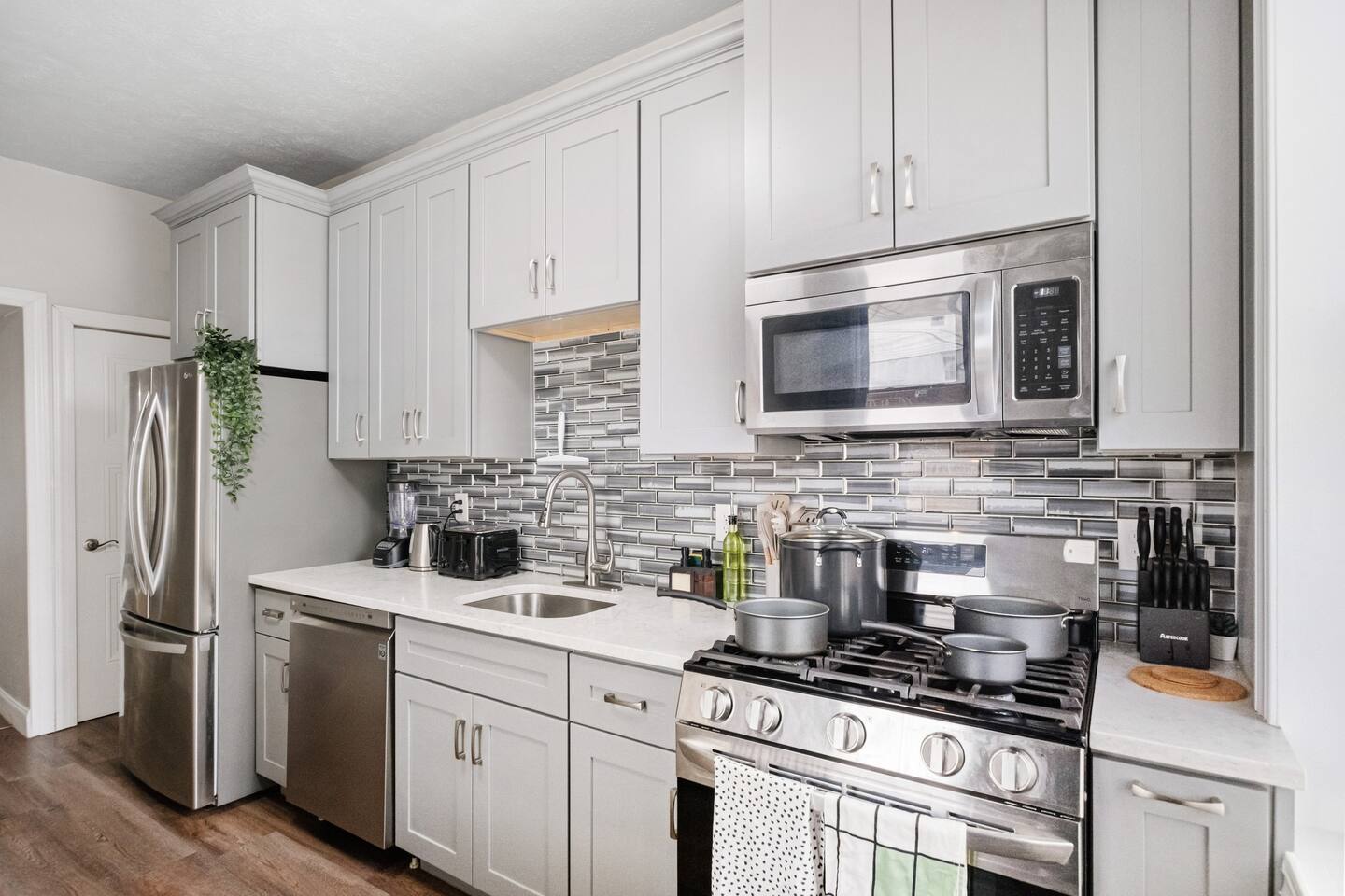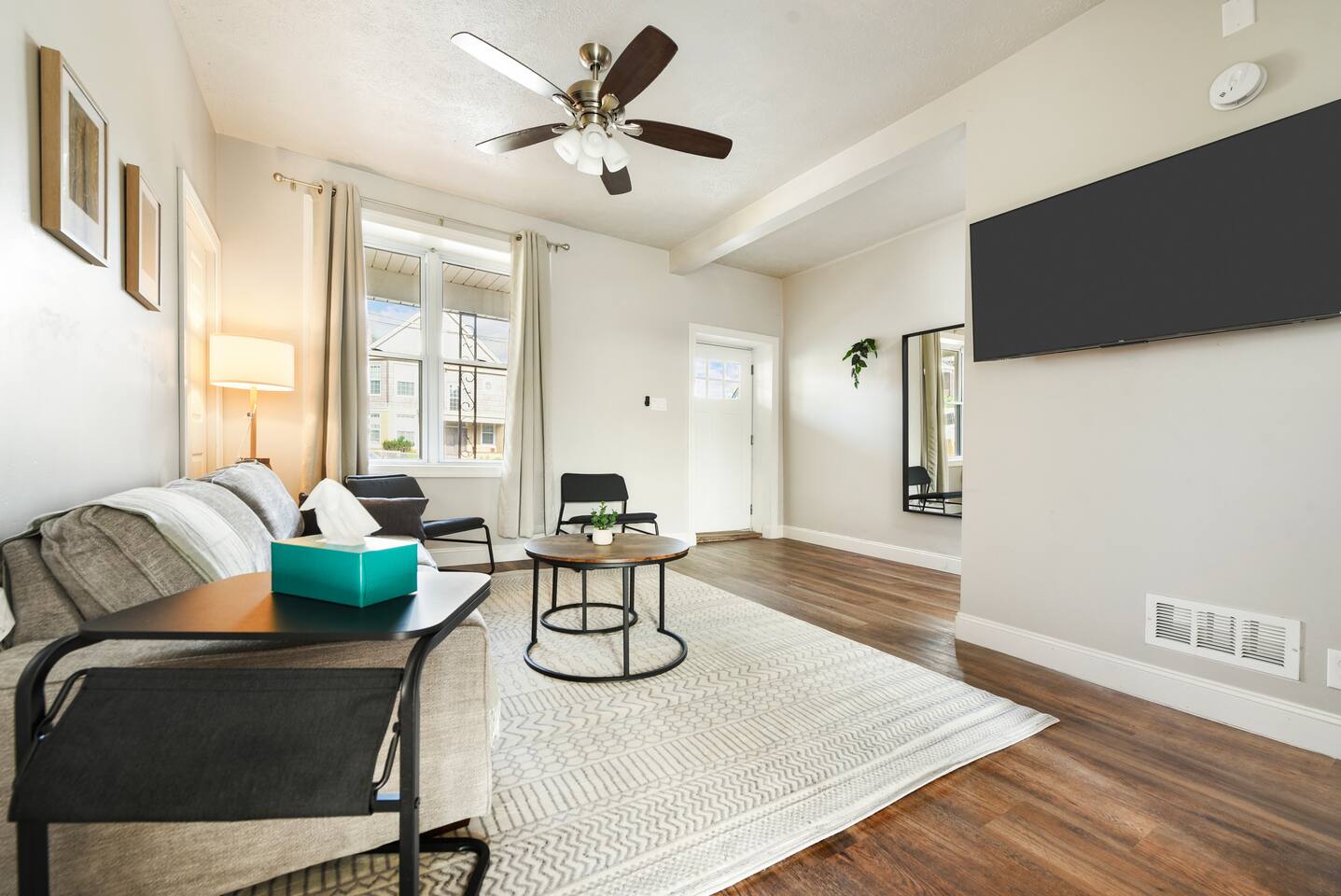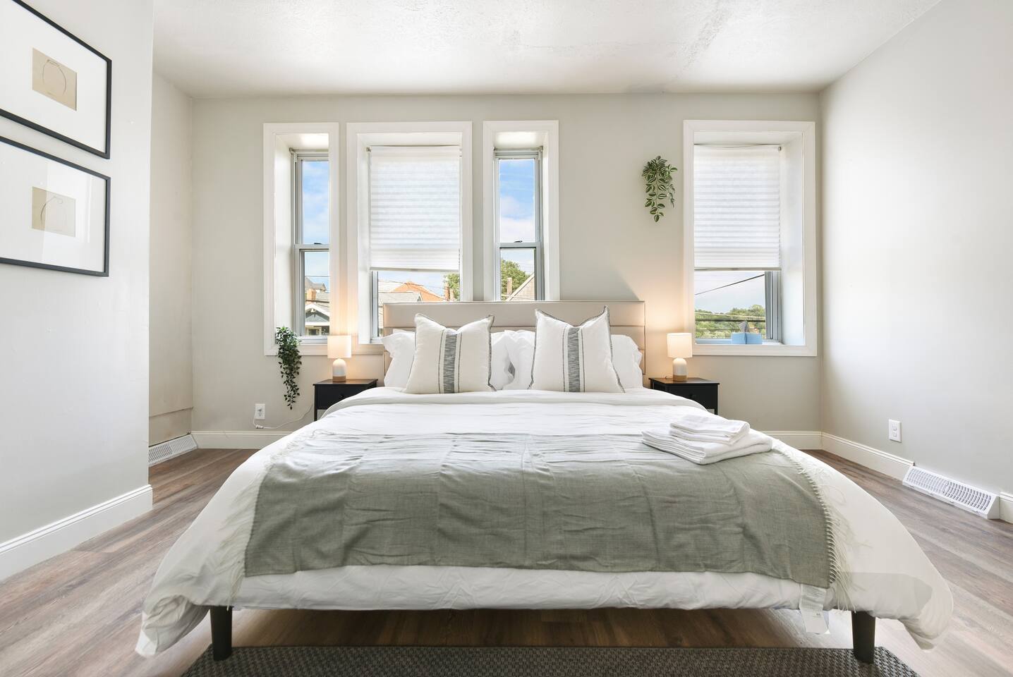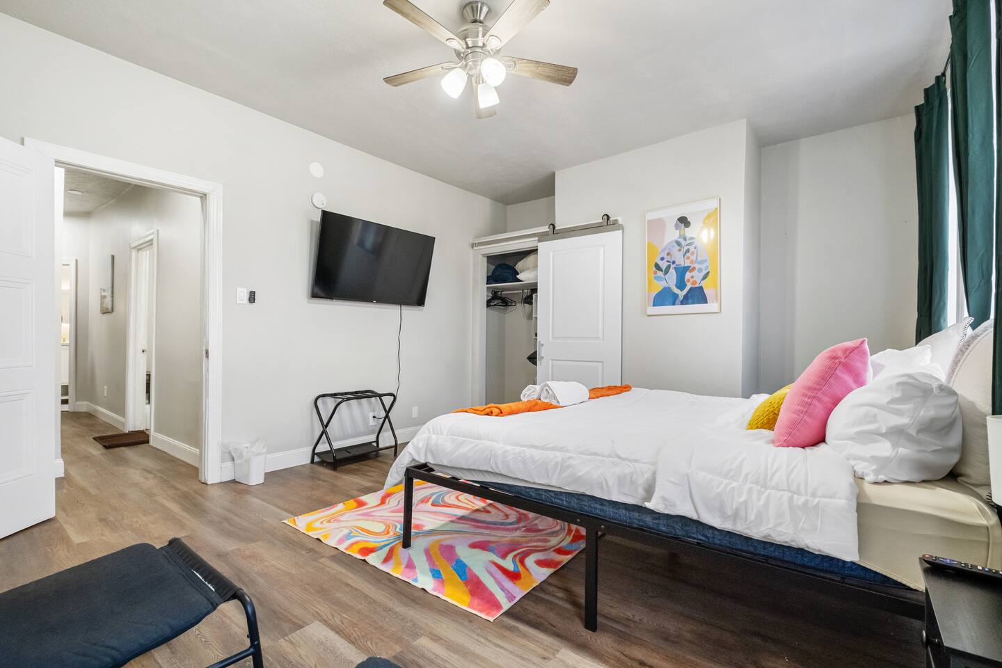 Newly Upgraded Design ✨ Experience comfort in this charming 4 bedroom (5 bed), 2-bath house ideal for family gatherings or friends getaways Enjoy modern decor, a spacious layout, a King bed, two Queen beds, 2 Full beds and 2 portable cribs. Relax in the tub with a Roman waterfall & auto-defog mirrors, an updated deck, and ample free parking Book now and experience the best of the Steel City !