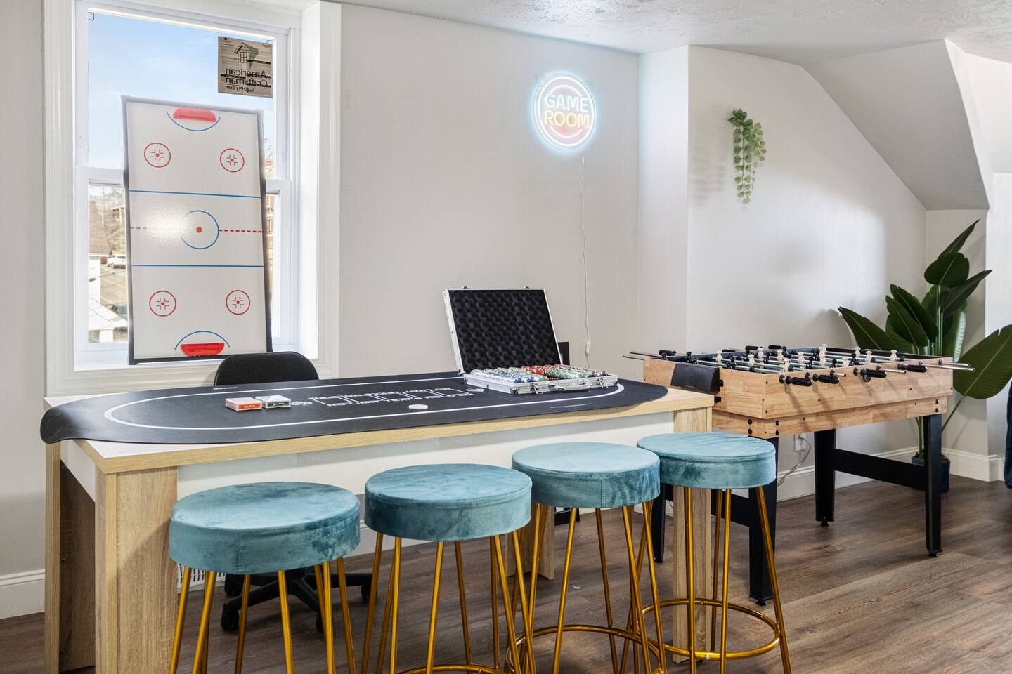 KEY AMENITIES/DETAILS : ✓ Hot tub ✓ Check-in process: Keyless entry with code ✓ Check-out process: Chore-Free Checkout ✓ 4 Bedroom House ✓ 2 Full Bathrooms with soaker tub & shower and modern mirrors auto-defog ✓ Sleeps 10 in 1 King, 2 Queen and 2 Full beds ✓ Internet: High-speed 500mbps FiOS ✓ Comes with 2 portable cribs ✓ Parking: Free street parking for up to 4 cars ✓ Spacious outdoor deck with table and seating ✓ Laundry: Free Washer/dryer in the basement ✓ Family friendly: Pack N Play, books, high chair, & more! ✓ Dining - Seating for 8 available in the dining room ✓ Kitchen: Fully stocked with quality amenities ✓ Coffee: Comes with coffee maker, coffee, sugar etc ✓ Tech: Smart TVs, smart locks ✓ Security: wireless doorbell, internal non-recording decibel meter for party prevention ✓ Eco-friendly: Recycling, earth-friendly toiletries and soaps, more ✓ HVAC: Whole home heating/AC. The strategic location of your home is an added advantage. Just minutes away from ✓ Riverview Park (4 min) ✓ Rivers Casino (4 min) ✓ PNC Park (7 min) ✓ Downtown (9 min) ✓ Acrisure Stadium (7 min) ✓ Allegheny General Hospital (6 min). This stunning family home has a seamless blend of modern elegance & comfortable living. As you approach the residence, the curb appeal is immediately evident. The front of the house boasts ample space to accommodate up to 5 cars, ensuring parking is never a concern for you or your guests. Stepping inside, you'll be greeted by an interior designed with a keen eye for comfort & style. The layout flows seamlessly, with an inviting living room that opens up to the heart of the home – the dining and then leads to the kitchen which is equipped with modern appliances, and ample counter space/breakfast bar, making it a perfect spot for preparing meals or simply enjoying casual conversations. One of the highlights of this property is the expansive backyard. It's a true oasis, featuring a large, well-maintained lawn where kids can play & adults can relax. The outdoor space is an ideal canvas for hosting various events. The possibilities are endless! You'll find yourself conveniently situated near key amenities and entertainment options. Whether you're attending a sports event, seeking medical care, or exploring the city's attractions, everything is within easy reach!