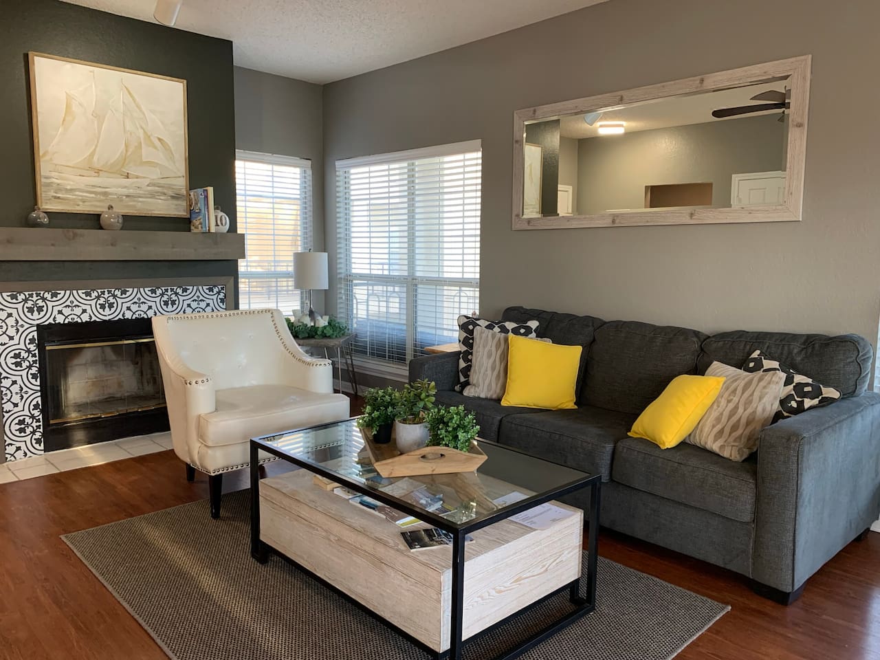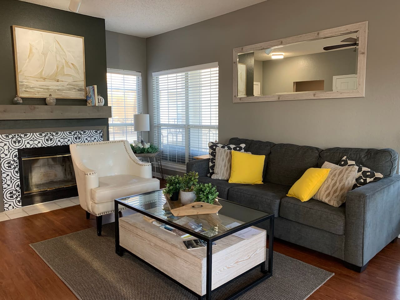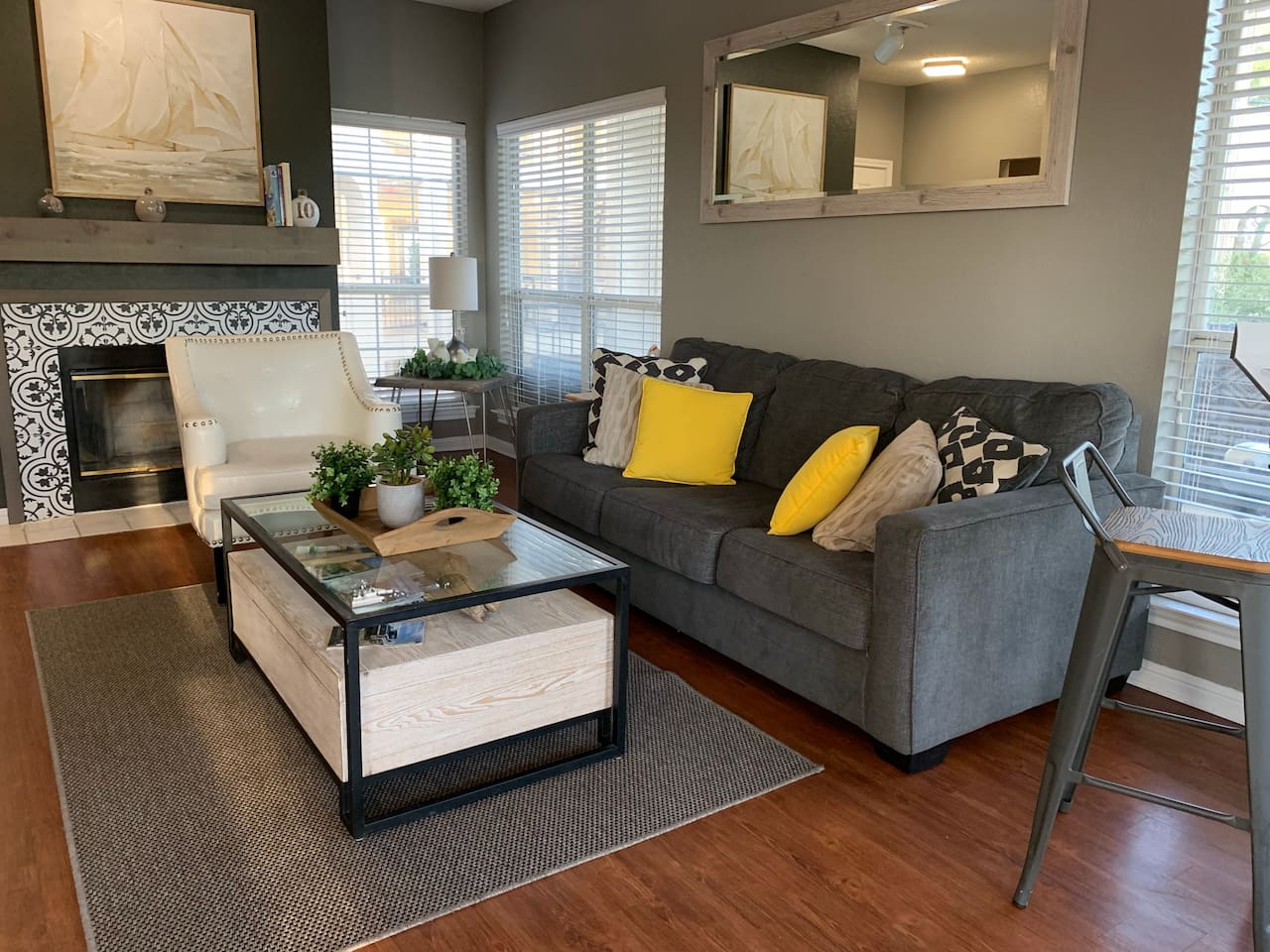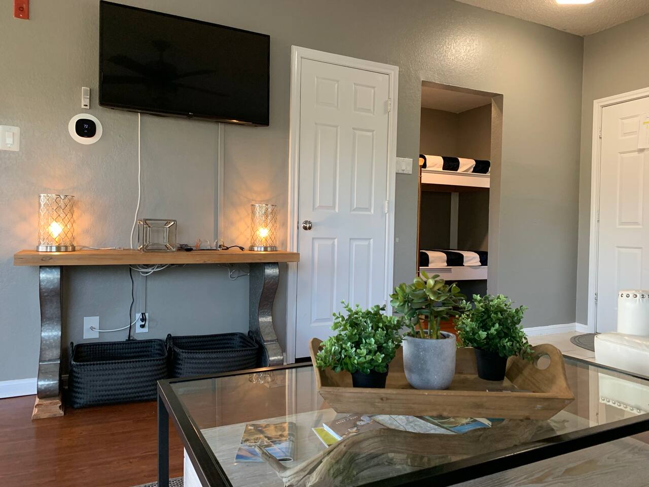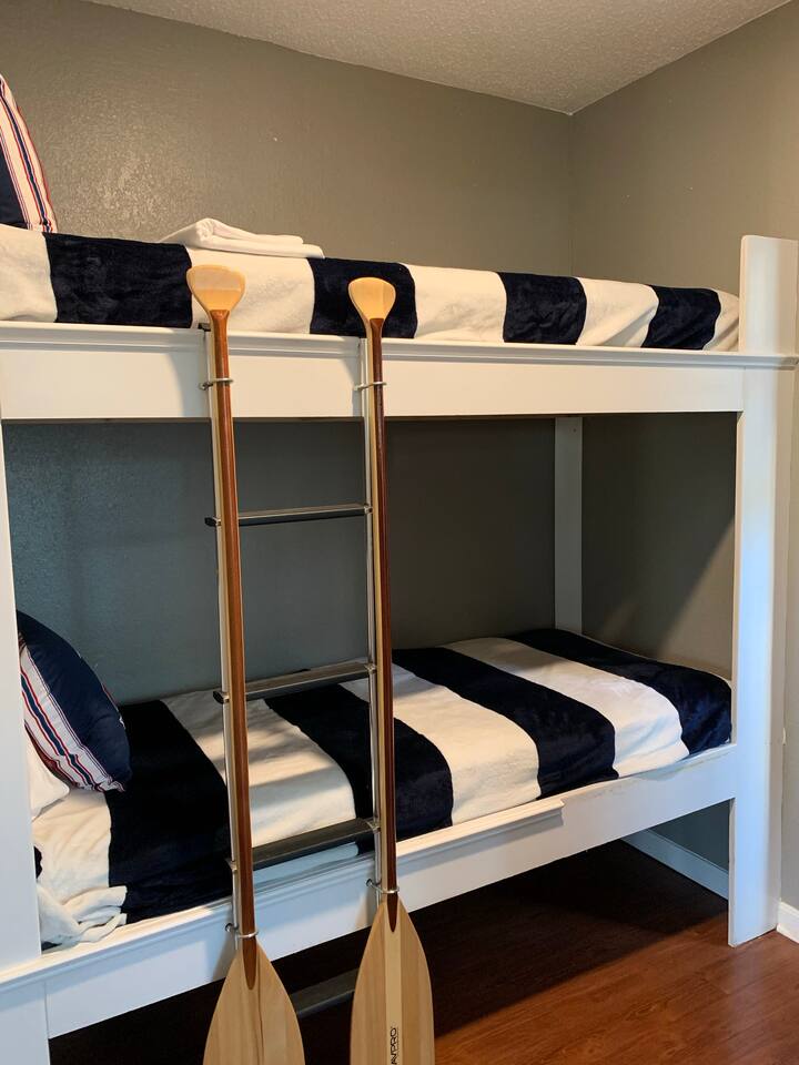 Welcome to your relaxing escape at The Island on Lake Travis—a peaceful, resort-style condo community in Lago Vista, just outside Austin. Whether you’re planning a romantic couples’ getaway or a comfortable family stay, this thoughtfully designed 2-bedroom, 2-bath condo offers the perfect blend of comfort, privacy, and modern convenience. Living Room: The heart of the home features comfortable seating, a fireplace for cozy evenings, and a welcoming layout perfect for families or couples. Enjoy movie nights, quiet reading time, or casual conversations after a day out Kitchen & Dining: A fully equipped kitchen with modern appliances and all the essentials you need to prepare meals during your stay. The adjacent dining area is ideal for family meals, game nights, or a relaxed dinner in Primary Bedroom: A spacious and calming retreat with a comfortable bed, ample storage, and bathroom. Designed for rest and privacy after a full day of lake activities Primary Bathroom1: Clean and well-maintained with a full bath setup, fresh towels, and essential toiletries for a hotel-like experience Second Bunk Bed: Perfect for kids, friends, or another couple—for additonal sleeping arrangements. Second Common Bathroom: A full bathroom conveniently located on living room, making mornings and evenings easy for everyone Covered parking is on the ground level. One reserved parking space for overnight guests, with additional daytime-only "guest visitors” spaces as well .