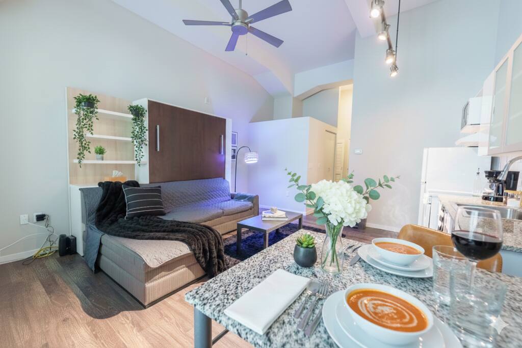 Experience downtown Cincinnati in style from this modern & beautifully designed studio apt with Murphy bed—just steps away from the stadium! Ideal for 2 guests. The space features a thoughtfully decorated interior, a fully equipped kitchen, and a smart TV Government-issued ID and background check are required for all guests Please note: No pets allowed. If you’re traveling with an ESA, kindly notify us at the time of booking to ensure a smooth check-in .