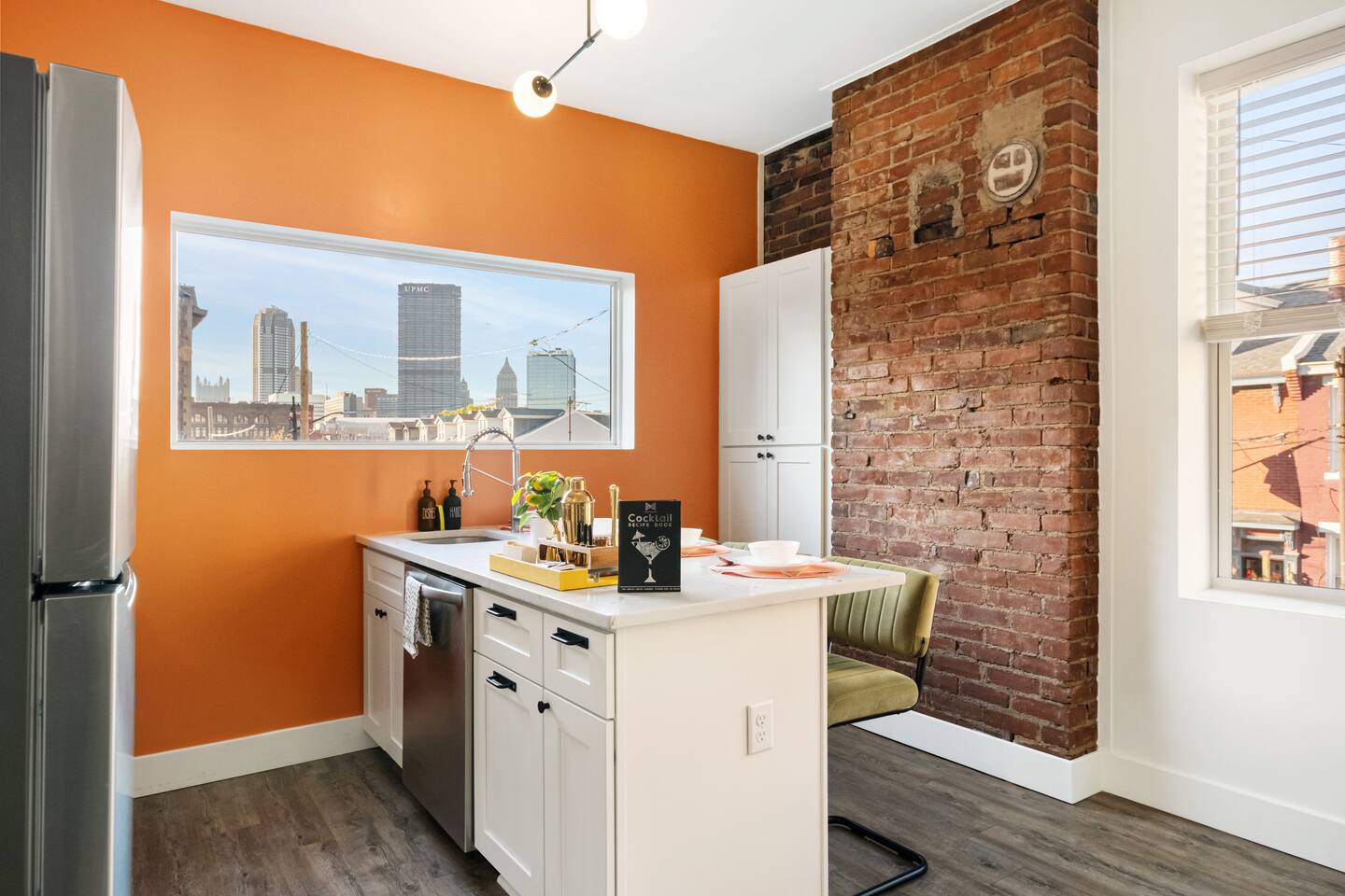 Welcome to our vibrant 1BR apartment in the heart of Pittsburgh! This freshly renovated unit on Miltenberger Street combines modern comforts with funky, retro vibes. Relax in a stylish living space filled with pops of color, exposed brick, and new appliances. Perfectly located near downtown, it's ideal for exploring local hotspots or enjoying a cozy night in. Fully furnished and ready for your stay—experience the best of Pittsburgh with a touch of flair with minutes to Downtown .
