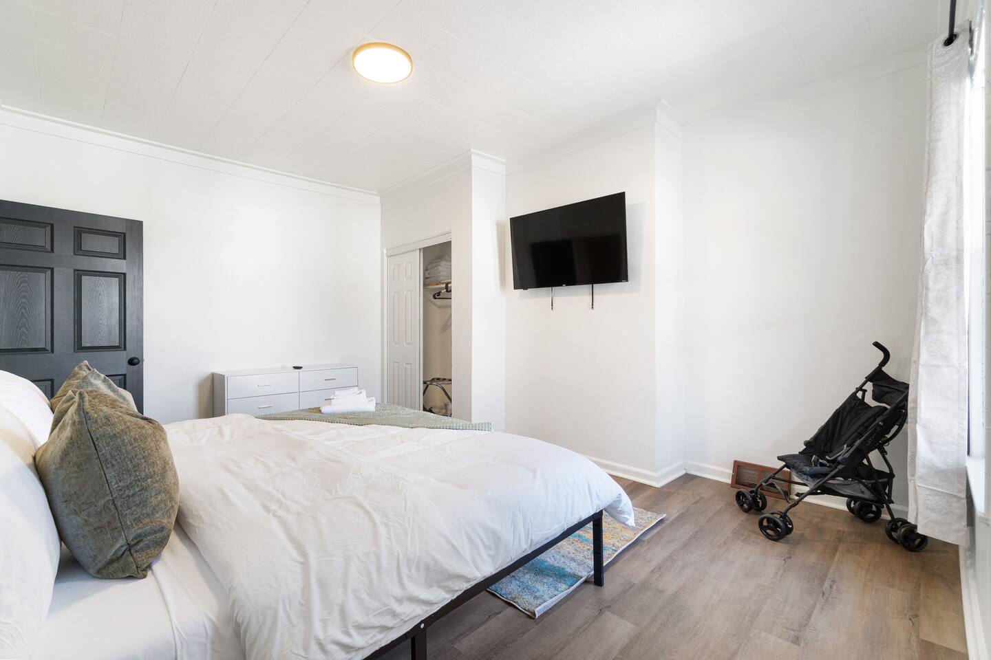 Newly renovated 3 bedroom and 1 bath unit, minutes from Downtown , boasts a fully equipped kitchen with luxury stainless steel appliances, smart TV, in-unit washer/dryer and more for a perfect stay with loved ones Ideal for travellers /families with a baby, as we provide a stroller, pack n'play, along with toys and games, saving you space during your travel ➤ Street Parking : Permit available for N zone upon request (~$15/week). Free street parking within 75 meters, no restrictions (refer to attached map). ➤ 3 Bedrooms - 1 King, 2 Queen beds, sleeps 6. ➤ Dedicated office space with ergonomic setup. ➤ Apartment is in 2nd floor. So there would be steps at first to get inside the unit. ➤ Once you are inside, all main amenities are on one floor (no stairs within the unit). ➤ High-end finishes with exposed brick walls ➤ Brand new luxury appliances, and kitchen essentials provided. ➤ Dining area seats 4, W/ baby highchair available. ➤ Stroller provided for family travellers' convenience. ➤ 1 Full Bathroom with hotel-quality linens. ➤ 60" Smart TV in the living room, 50" in Master Bedroom. ➤ In-unit washer with dryer. ➤ Smart Lock for easy check-in. ➤ High chair, stroller, pack n' play available upon request (no sheets). Although our cleaning and maintenance teams work diligently to ensure the unit is clean and prepared, this is an older building which is renovated. Older homes are known to have general wear and tear, creaky steps, less sound separation between units, etc If this is not something you are comfortable with another home may be a better fit for you. This unit is not recommended for people with mobility issues as there will be aprox 13-15 stairs to reach the 2nd floor where all amenities are. Note: If there is no prior trip history, a background check form may be required .