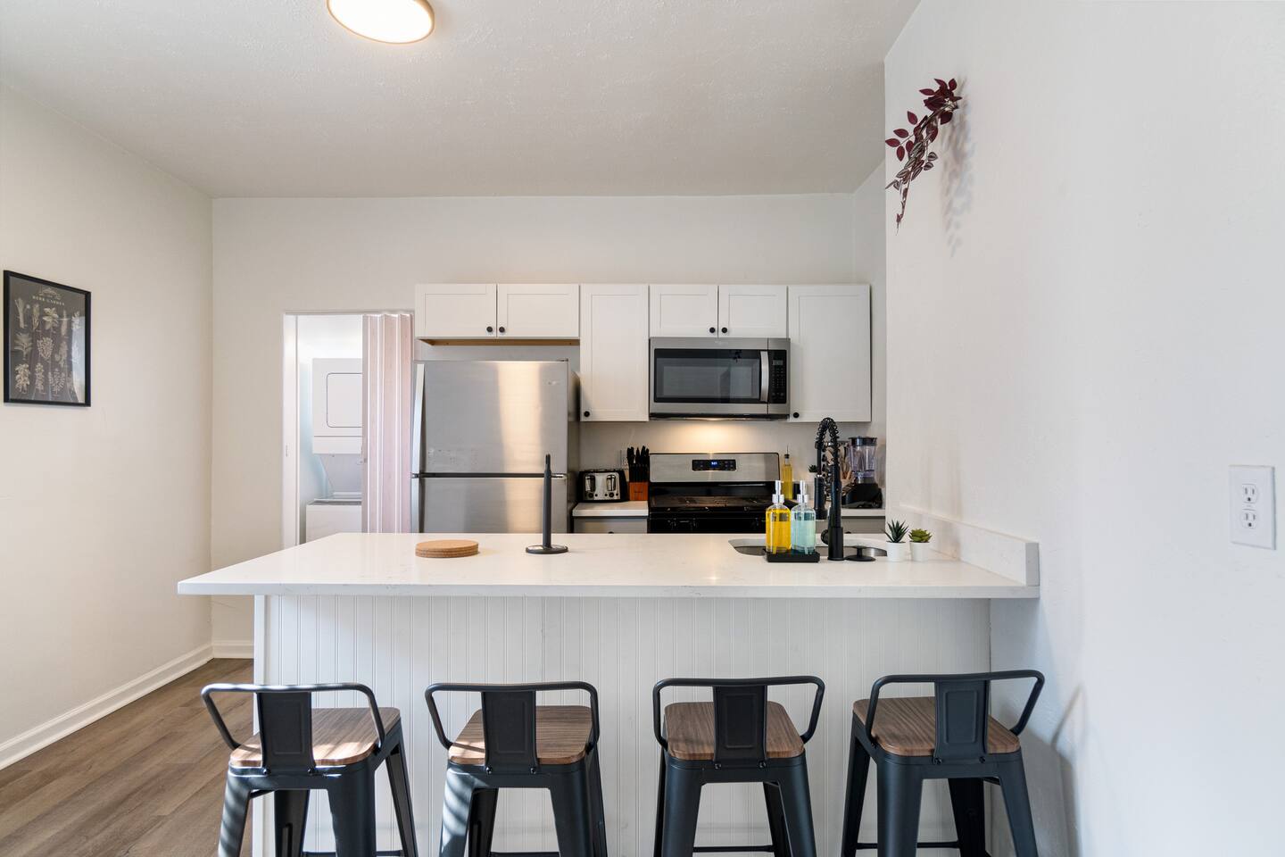 (1). Kindly provide a copy of your Government-issued Identification. Identification Verification is mandatory for check-in. (2). Guests are accountable for their own their consumables beyond the initial supply. (3). Please note that smoking is not permitted indoors or on the patio, as it is a shared space with family and children. Smoking is only allowed at least 25 feet away from the property. Failure to comply will result in a violation fee of $150. (4). Parties are strictly prohibited, and noise monitoring devices have been installed within the premises. (5). We urge you to thoroughly review the house rules. (6). Kindly make advance arrangements with us to reserve a parking pass. Others: (1). Security Camera: We have one doorbell camera facing the entrance. This camera is on and recording video and audio of all events & motions 24/7 for the security of the property and our guests. (2). Noise Monitoring Device: A noise monitoring device is present inside the unit. This device does not record any audio or video but monitors the decibel level to ensure a peaceful environment. (3). No-Party Policy: The house has a strict no-party policy. Adherence to this policy is a requirement for all guests to maintain a comfortable and respectful living environment for everyone. Reminder: Please note, that photos of the property may slightly differ from the actual property. This is due to any upgrades or enhancements that have been made, such as upgraded furniture, decor, or general maintenance.