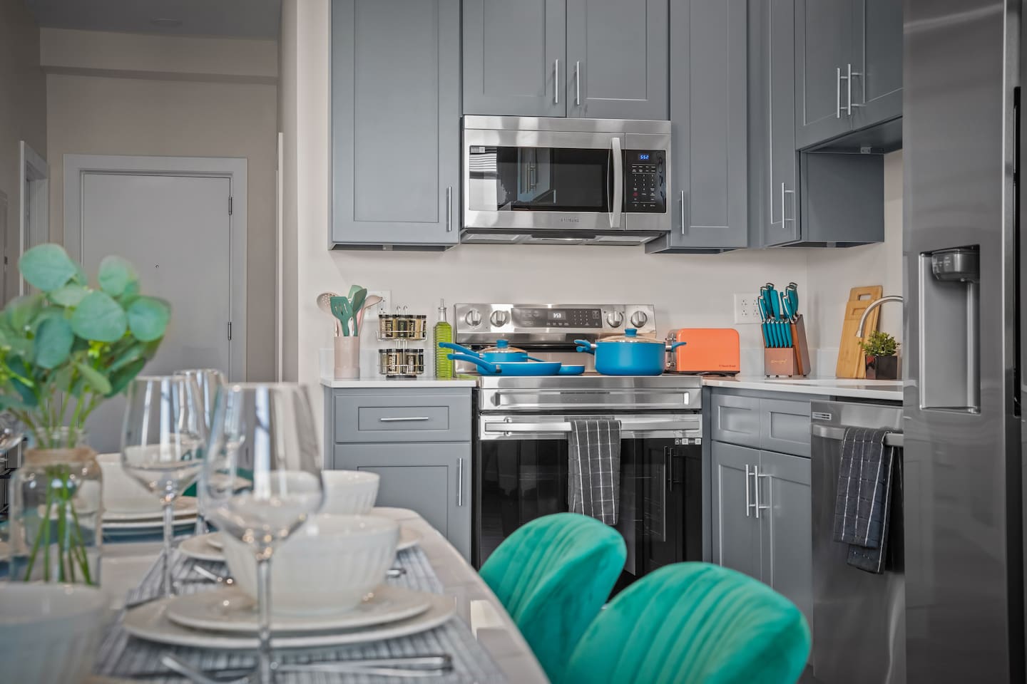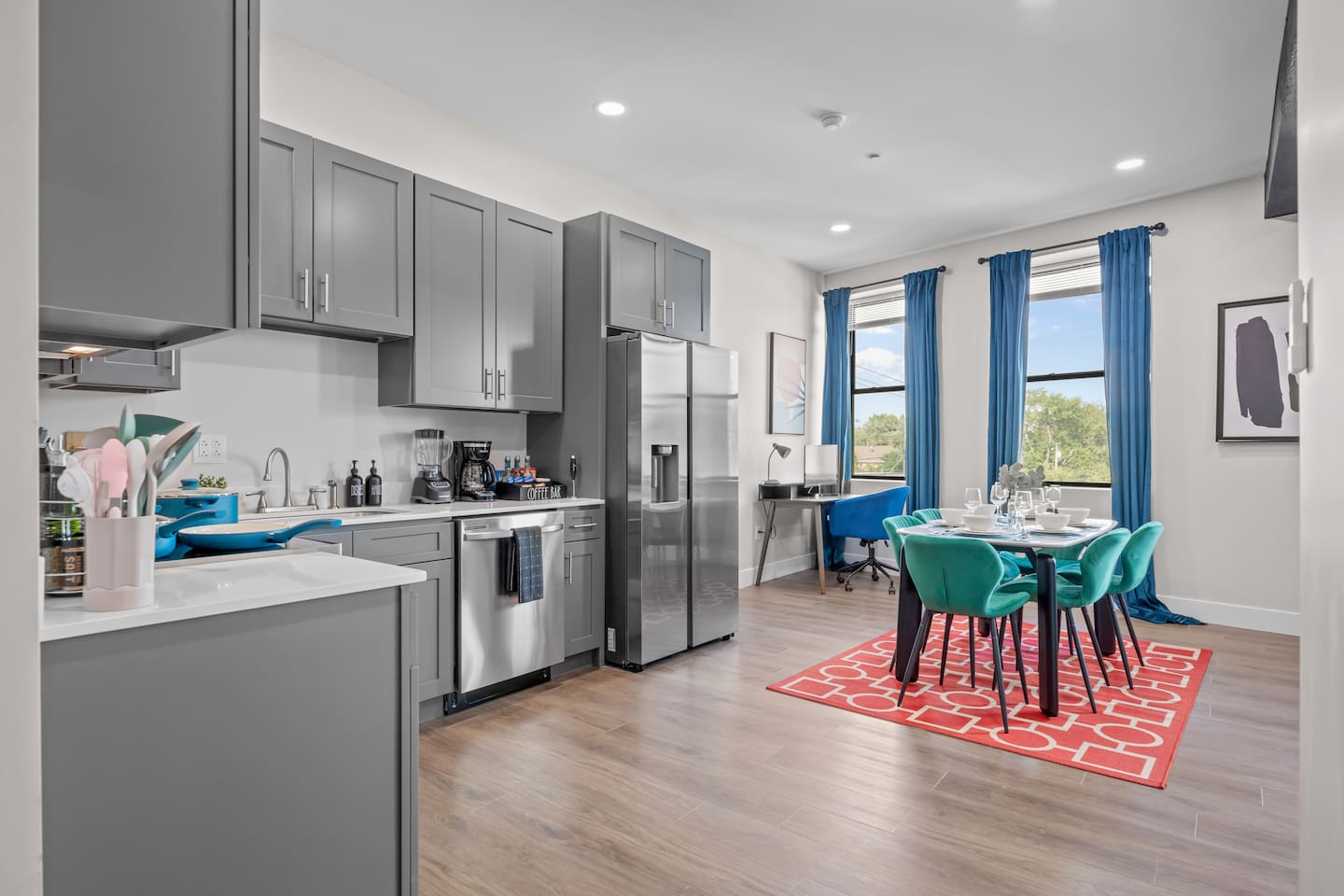 Other things to note: ➤ No outside shoes are to be worn inside the home or on the carpet. ➤ If this unit is unavailable for your desired dates, please contact us as we may have alternative accommodations within the building. ➤ Pets are welcome in this apartment, with certain breed restrictions and applicable pet fees. Please inform us beforehand to avoid cancellation. An additional cleaning fee of 100 per pet. ➤ **If you book the unit, you will need to download an app to access the building. We will be sending the app request to your given email address** ➤ After booking & Before check-in, present a government ID in Airbnb Chat. ➤ Guests are responsible for replenishing their own consumables after the initial supply is depleted. ➤ Guest are expected to use their own Netflix account. In case of any purchase of Spectrum channels or and on's - you will be billed the amount. ➤ A noise-aware sensor is installed in the unit to monitor decibel levels, ensuring a peaceful stay for permanent residents and guests alike; it cannot record any audio. ➤ A blink module will be always powered to support the door camera. (Should not be unplugged). ➤All guest are requested to take a good care of the unit and return it in the same condition it was handed over to you, except for the cleaning. Cleaning and linens will be taken care of by our cleaner. DO NOT move the furniture's around. ➤No Smoking inside the unit. Subjected to heavy penalty! ➤Please note: The building management retains a copy of the unit key and may access the unit in case of emergencies or to carry out essential maintenance. While most maintenance visits are scheduled in advance, occasional unscheduled visits may occur if prior appointments are missed or urgent repairs are needed.