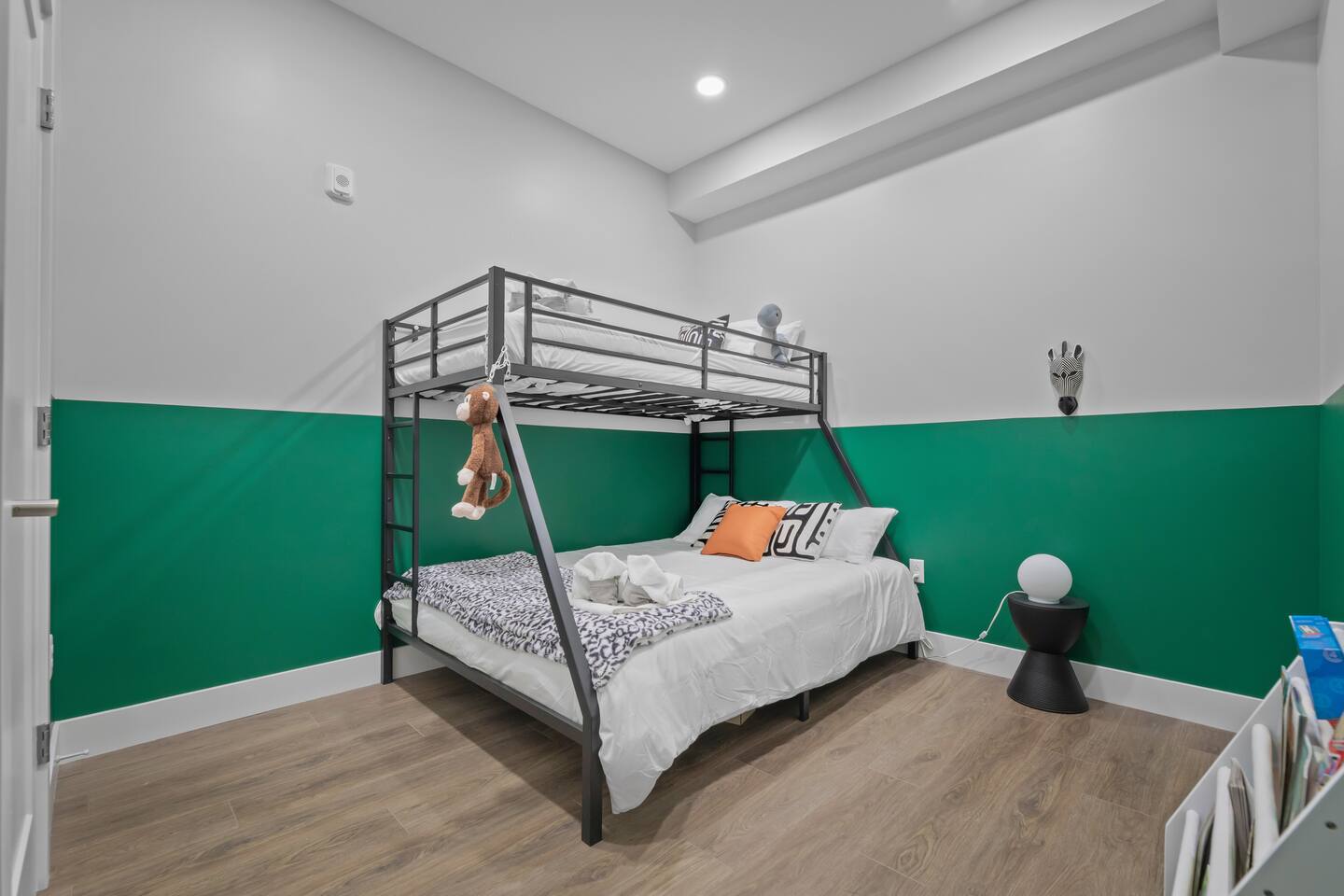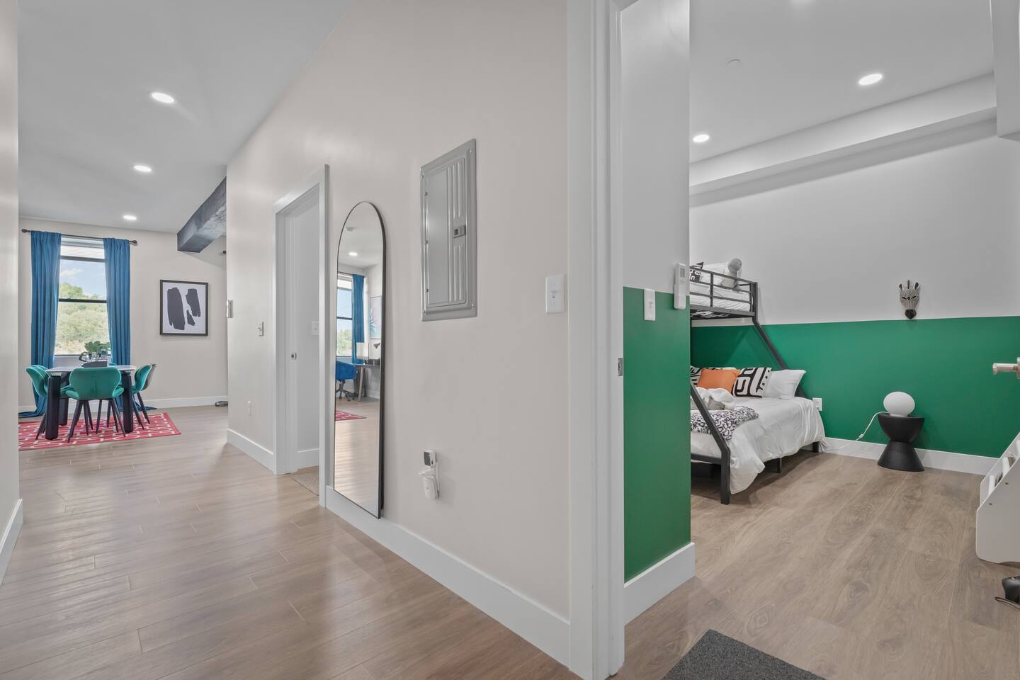 We are delighted to introduce you to our welcoming 2-bedroom, 1-bathroom apartment. This modern luxury retreat provides everything you need for a perfect and worry-free stay with your family ➹Living Room➹ ◙ Stylish Interior: Thoughtfully designed with modern aesthetics and cozy furnishings, this living room is perfect for relaxation and entertainment ◙ 4K 55' HDR Smart TV: Enjoy your favorite shows and movies on a top-of-the-line smart TV ◙ Movie projector : 100’ screen for you to enjoy W/ Roku ◙ Work Desk and Office Chair: Ideal for remote work or catching up on email ◙ Sofa Bed: Additional sleeping space for guests, providing flexibility & comfort ➹Bedroom 1➹ ◙ Queen-Size Bed: Luxuriate in a queen-size bed with a luxury foam mattress, premium pillows, linens, and sheets for a restful night's sleep ◙ Shelf Space: Storage to keep your belongings organized ◙ Reading Lamps: Convenient lamps for nighttime reading or ambient lighting ➹Bedroom 2➹ ◙ Queen-Size & Twin Bunk Bed: Designed with Kids in mind, but adults can enjoy the playfulness theme. Luxuriate in a queen-size bed with a luxury foam mattress, premium pillows, linens, and a Twin Bed on top making it a memorable experience for kids ◙ Shelf Space: Storage to keep your belongings organized ◙ Reading Lamps: Convenient lamps for nighttime reading or ambient lighting. ◙ Book Rack: Fun Kid's books & Board Games are located. ◙ Star/Galaxy Lamps: Make the light glow in a star and galaxy-style theme room for the night. With a built-in speaker and changing lights based on music. ➹Kitchen & Dining➹ The apartment features a fully equipped kitchen where you can easily prepare your favorite delicious meals. Its spacious and modern amenities exceed expectations for a 1 bedroom, 1 bathroom apartment. ◙ Oven. ◙ Stove. ◙ Refrigerator/Freezer. ◙ Dishwasher. ◙ Coffee Maker + Coffee Essentials: Start your day with a fresh cup of coffee. ◙ Sink - Hot and Cold Water. ◙ Glasses, Silverware, Pots and Pans: All the essentials you need for cooking and dining. ◙ Rice Cooker, Blender, Spice Blend, Oil, Toaster, Kettle and many more . ◙ Dining table can seat up to six . ➹Additional Amenities➹ ◙ High-Speed Wi-fi: Stay connected with fast and reliable internet throughout the apartment. ◙ In-Building- Paid- Washer & Dryer: Convenient paid laundry facilities for your use right next to the unit ◙ Self Check-In: Enjoy the ease of self-check-in with a smart lock system ◙ Air Conditioning and Heating: Ensure your comfort no matter the season with air conditioning and heating with a split duct system in each room & living room ◙ 24/7 Gym: This amenity is designed to provide you with the flexibility to work out at your convenience, whether you prefer early morning sessions, late-night exercise, or anytime in between. Located in the basement ➹Bathroom➹ The inviting full bathroom is stocked with all essential toiletries, ensuring a hassle-free stay ◙ Bath Tub with shower ◙ Wash basin ◙ Mirror ◙ Toilet ◙ Towels ◙ Essential toiletries including Dryer, cotton swap etc. ➹The Building➹ This apt is located within a century-old building and more recently renovated units, located right next to McD , 7 miles from the Airport, 0.5 miles to the zoo, and 5 miles from Downtown This delightful apartment is perfect for those looking to experience the best of Cleveland w/ the comforts of home If your preferred dates are unavailable, please check our profile for more listings in the city Add my listing to your wish list by clicking the "♥ Save" button in the upper-right corner Note: If there is no prior trip history, a background check form may be required